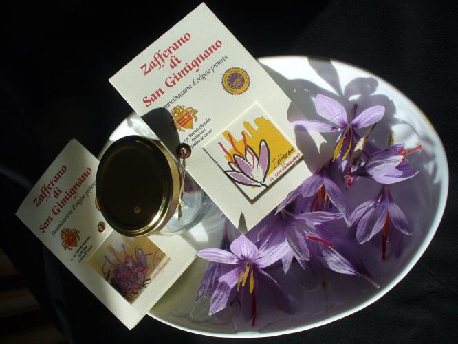 In the relaxing countryside of the Fortezza de' Cortesi - the ancient Castrum Cortesianum, important humanistic center during the Renaissance, mentioned in the textbooks of Italian literature, we propose an encounter with the flavour of the purest and prestigious Saffron DOP from San Gimignano, the pride of our farm, together with aromatic herbs, extra virgin olive oil and other genuine and quality products from our vegetable garden. We also introduce you the interesting history of the saffron, richness of San Gimignano during the Middle-Age.