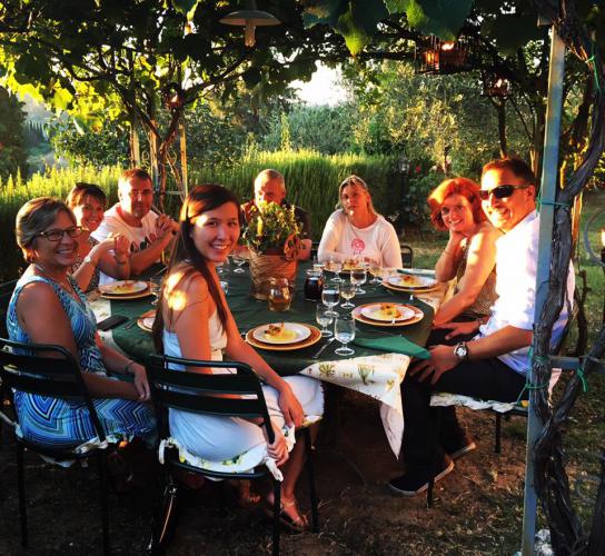 An intimate dinner for a few guests to experience the pleasure of a convivial gathering in the evocative atmosphere of the medieval dining room with vaulted ceilings of Fortezza de' Cortesi or, in fine weather, sitting comfortably in the garden under the pergola, enjoying, at sunset, the magical profile of the towers of San Gimignano in the background of a enchanting landscape. Dinner is a set menu on reservation. Five courses from appetizers to desserts, prepared with seasonal products from our farm and the region. Family recipes passed from mother to daughter where the main product is our prized saffron of San Gimignano DPO, to recreate a pleasant moment of conviviality and offer our guests the taste of tradition in an environment with authentic charm of the past.